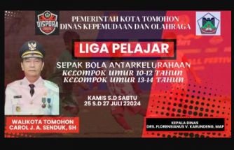 DetailsDalam upaya pembinaan dan pengembangan olahraga di kalangan pelajar, Dinas Kepemudaan dan Olahraga Kota Tomohon akan menyelenggarakan Kegiatan Pertandingan Sepak Bola Liga Pelajar antar kelurahan untuk kelompok umur 10-12 tahun dan 12-14 tahun. Pertandingan ini dijadwalkan berlangsung dari tanggal 25 hingga 27 Juli 2024 di Stadion Babe Palar. Kepala Dinas Pemuda dan Olahraga Kota Tomohon,
