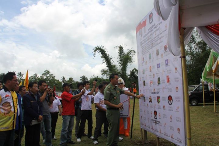 Manfaatkanlah momentum ini untuk membangun kesepahaman antar partai politik dalam menjunjung tinggi nilai-nilai sportifitas antar peserta pemilu, begitu pula dengan adanya deklarasi kampanye damai ini kiranya bukan hanya menjadi rutinitas menjelang pemillu semata, kiranya juga kita semua mampu menyamakan persepsi dan tujuan untuk melaksanakan pemilu dengan baik agar bisa terselenggara dan berjalan dengan aman, damai, nyaman dan tertib, demikian yang disampaikan Jimmy F. Eman, SE.Ak, selaku Walikota Tomohon dalam acara kirab karnaval kampanye damai pemilu 2014 yang digelar di lapangan Tumatantang sabtu (15/3). Pada kesempatam tersebut Eman juga mengajak kepada setiap parpol untuk dapat melaksanakan kampanye yang taat pada aturan karena warna boleh saja berbeda tetapi diyakini kita semua ingin memberikan yang terbaik untuk masyarakat Kota Tomohon yang sama-sama kita cintai dan banggakan. Dalam momentum tersebut para pimpinan parpol membacakan deklarasi kampanye damai pemilu 2014, sekaligus juga menandatangani deklarasi yang dipajang bersama juga para penyelenggara pemilu didalamnya Ketua KPU, Panwas, demikian selaku Pemerintah Kota, Walikota Tomohon ikut menandatangani deklarasi kampanye damai, demikian juga dengan para Muspida ikut menandatanganinya. Disamping itu pihak KPU menyediakan berupa baliho kosong yang dijadikan tempat untuk para masyarakat bertandatangan sebagai simbol anti golput. Sementara itu Kapolres Tomohon AKBP. Ratna Setiawati, SH menuturkan sebagai penyelenggara pemilu dalam bidang keamanan pihaknya mengimbau agar dalam lingkup masyarakat harus terus menciptakan suasana hidup rukun dan damai. “kita semua selaku masyarakat bersama-sama menjaga serta menyukseskan pemilu 2014, serta menjaga ketertiban dalam pelaksanaan kampanye damai demikian pelaksanaan pemilu nanti, tunjukanlah kesantunan dalam berkampanye dan taatilah segala regulasi yang disediakan, ujar Setiawati. Disisi lain Ketua KPU Beldy Tombeg, ST mengungkapkan dalam pelaksanaan kampanye tunjukannlah kampanye yang berintegritas dan berkualitas, serta elegan, sopan dan berwibawa. Diketahui untuk iring-iringan dalam proses kirab karnaval kampanye damai dilakukan start di lapangan Tumatantang dan finis di kinilow. Hadir pula dalam acara tersebut Ketua DPRD Andy R. Sengkey, SE, mewakili Dandim 1302/Minahasa perwira penghubung mayor inf. Arins siging, ketua panwaslu Kota Tomohon Drs. Alex Walujan, M.Mpd, para pengurus partai se-Kota Tomohon, Sekretaris Kota DR.Drs. Arnold Poli, SH.MAP bersama para pejabat jajaran pemkot.