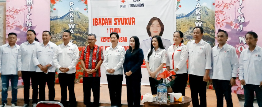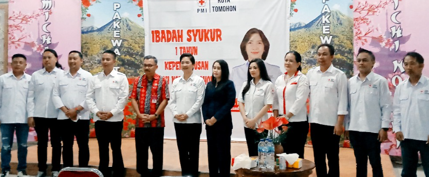 Palang Merah Indonesia (PMI) Kota Tomohon menggelar ibadah syukur 1 Tahun Kepengurusan Masa Bakti 2023-2028 era Ketua drg Jeand’arc Florentia Karundeng.