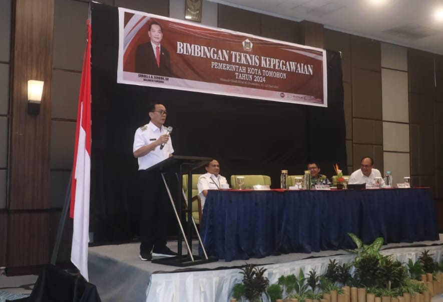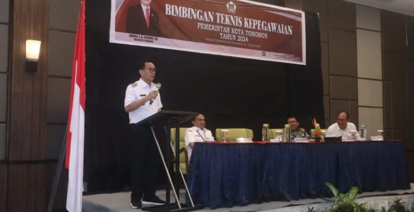 Walikota Tomohon, Caroll Senduk menghadiri Kegiatan Bimbingan Teknis Manajemen Kepegawaian Jabatan Fungsional Pemerintah Kota Tomohon 2024, yang diselenggarakan di Mercure Hotel Tateli Beach Resort. Pada, Rabu,(12/06/2024).